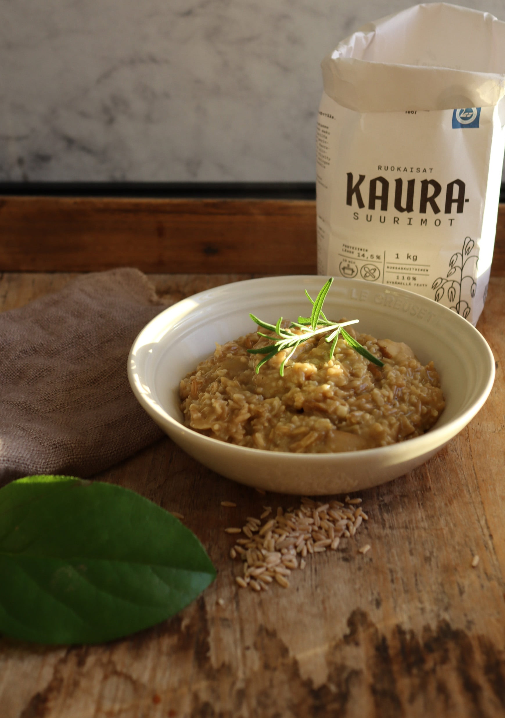 Herkullinen, kotimaisesta kaurasta valmistettu risottotyyppinen ruoka on saanut nimen kauratto. Tässä ohjeessa, Kinnarin Tilan ruokaisat kaurasuurimot saavat seurakseen herkkutatit.Vinkki! Voit käyttää herkkutattien sijaan myös kantarelleja tai suppilovahveroita.