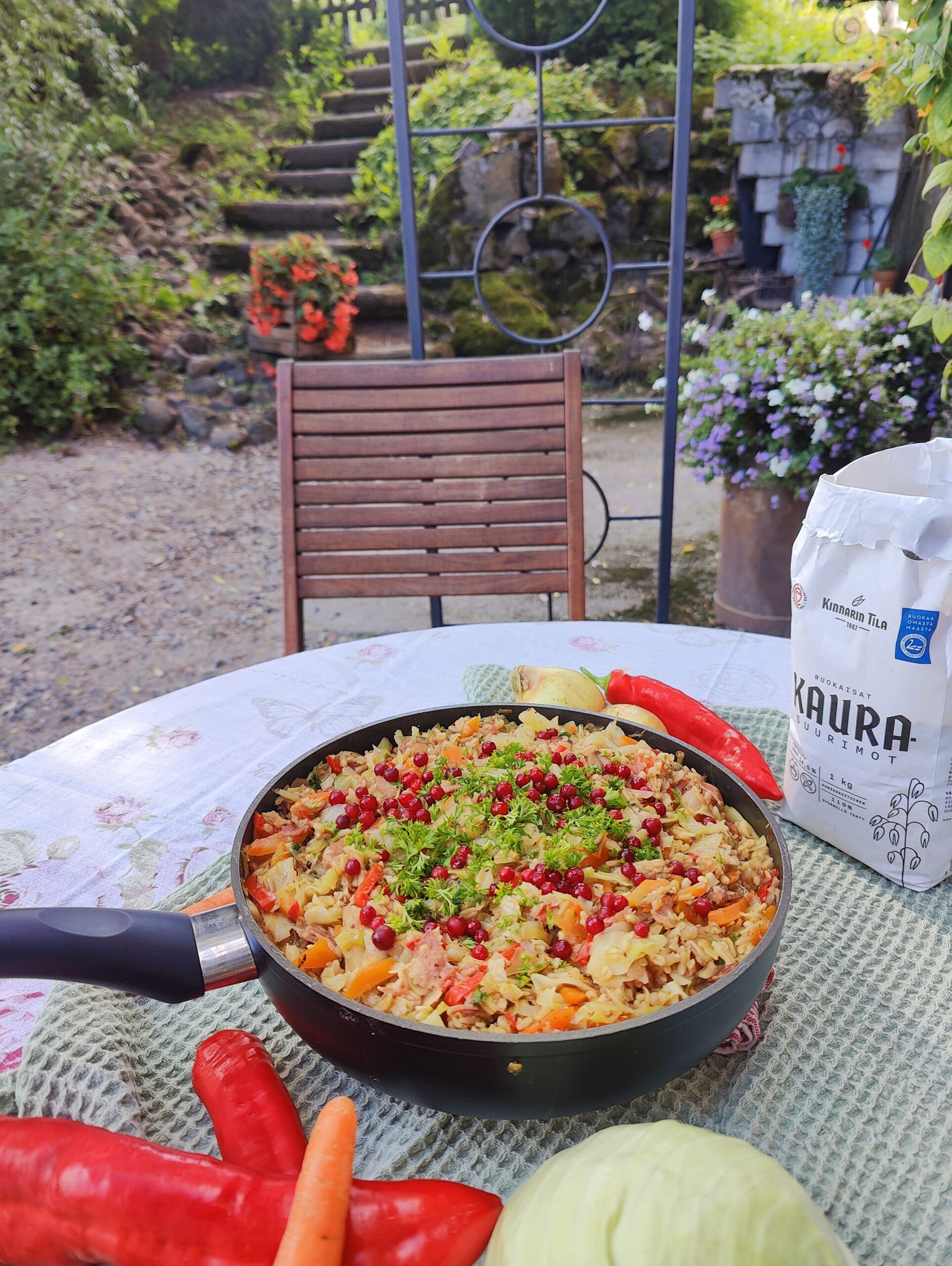 Mehevä kaali-pekonipaistos valmistuu helposti paistinpannulla. Ohje on suurehkolle paistokasarille tehty. Paistoksesta syö noin kuusi henkilöä. Jos haluat pienemmän määrän, ohje on helppo puolittaa.