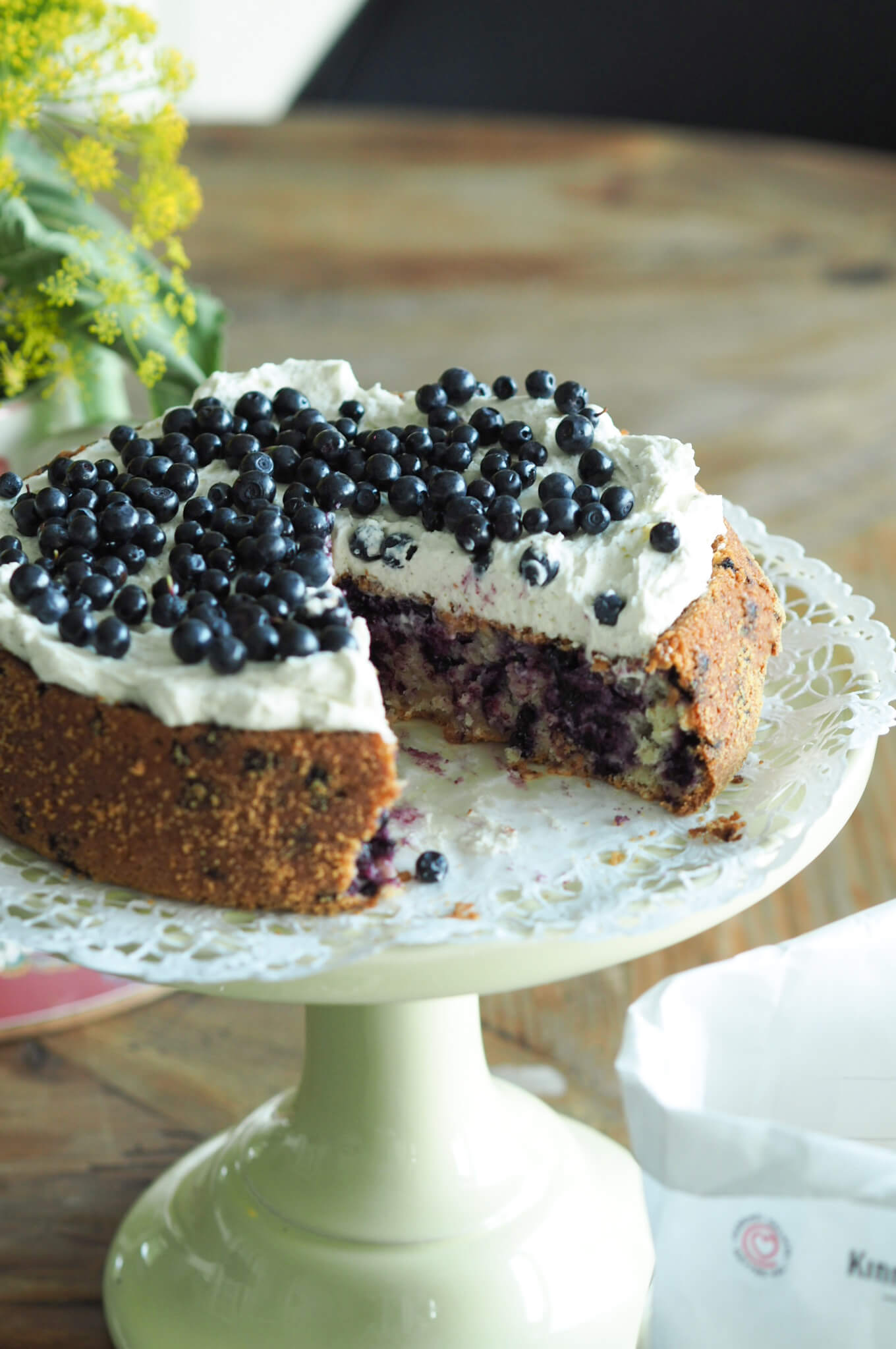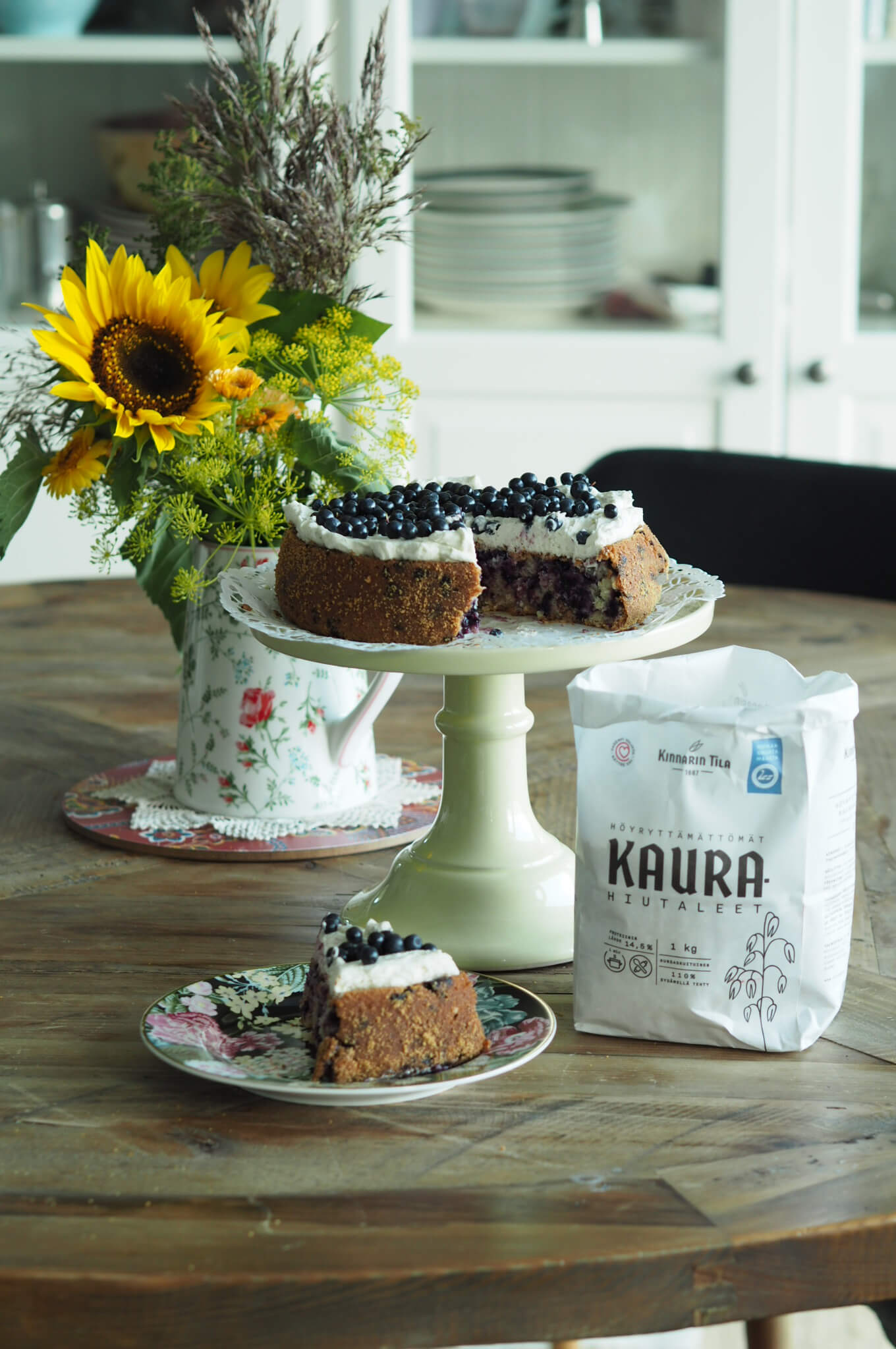 Mehevän mustikkainen kaurakakku sopii tarjottavaksi niin arkena, että juhlana. Upea kerma-tuorejuustokuorrute viimeistelee kakun.
