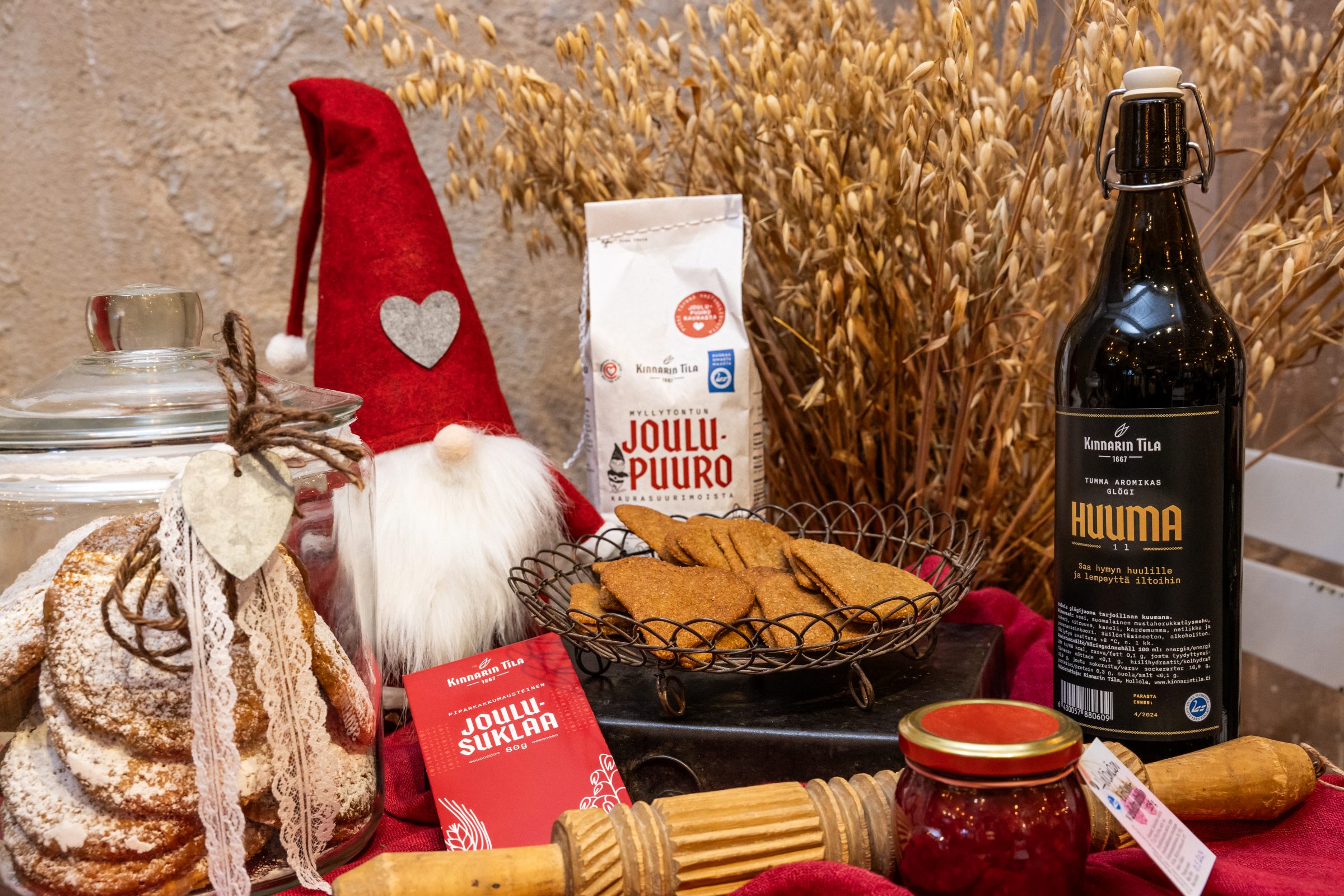 Joulun taika saapuu Kinnarin Tilalle, kun tila myymälämme somistautuu juhlaan! Lämminhenkinen myymälämme maaseudulla tarjoaa tänäkin vuonna Tilan kauratuotteita ja herkkuja, käsin koottuja lahjapakkauksia sekä herkullisia kotimaisia lähiruokatuotteita, jotka tuovat iloa niin omaan kotiin kuin lahjaksi läheisille.
