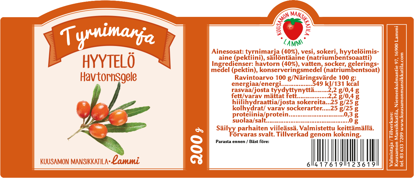 Kuusamon Manisikkatilan herkullinen tyrnihyytelö 200 g.