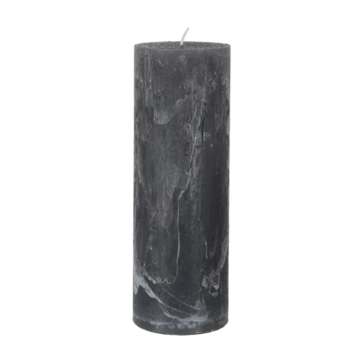Pilarikynttilä harmaa. Korkeus 20cm, halkaisija 7cm.